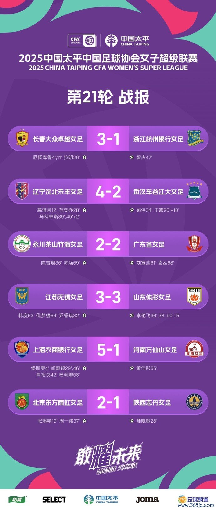 女超职业联赛 第21轮战报、积分榜、射手榜