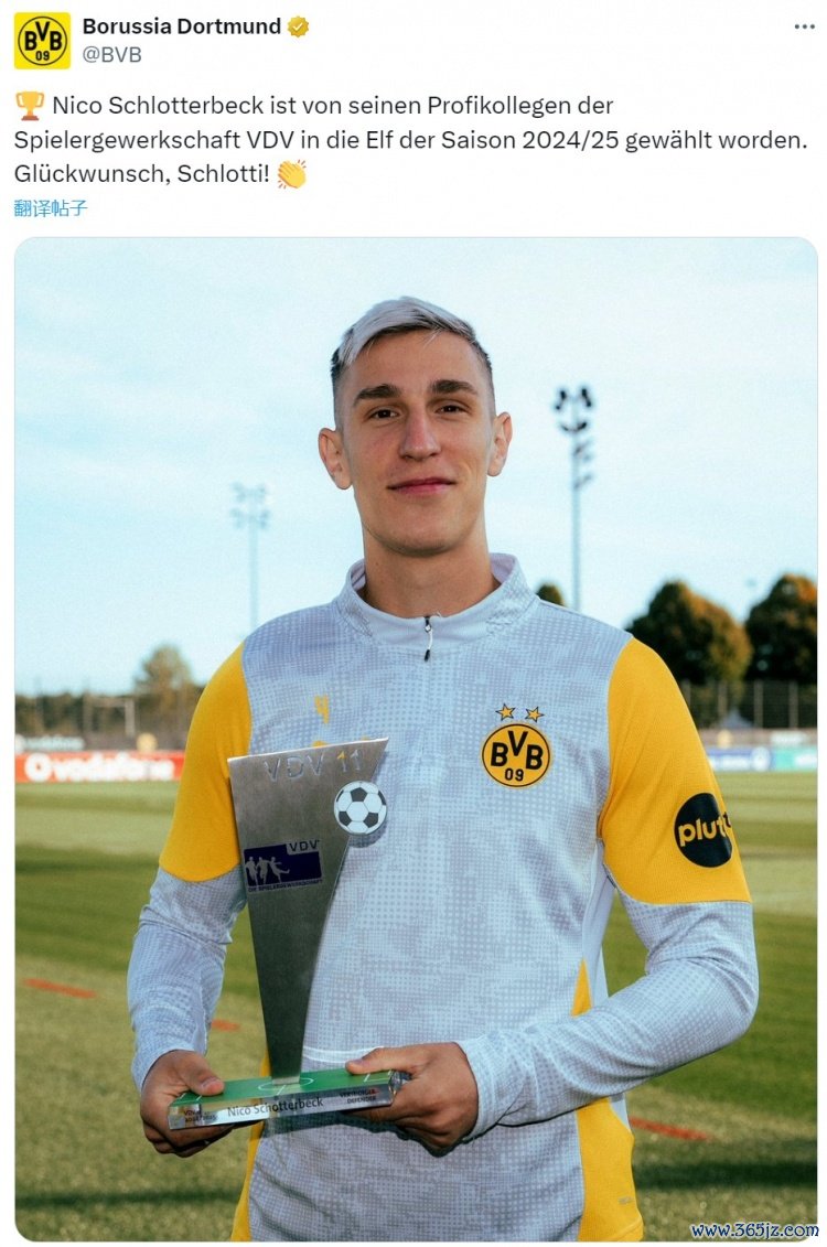 施洛特贝克入选德国职业球员工会(VDV)上赛季最佳阵形 皇马vs巴萨全场回放,欧冠NBA直播多特官方社媒晒出他手捧奖杯的照片, 体坛快讯通对他表示祝贺。
