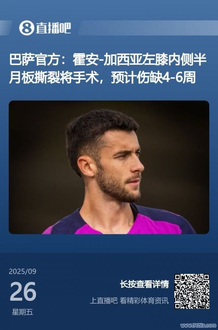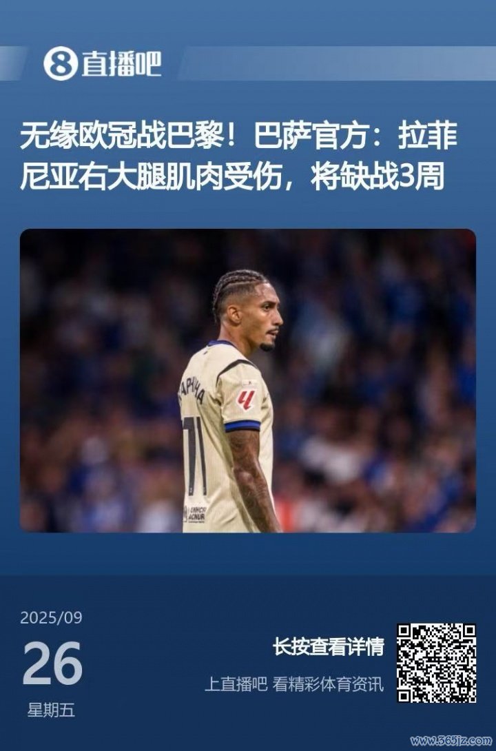 9月26日讯 今日巴萨官宣拉菲尼亚以及霍安-加西亚伤情,拉菲尼亚将伤缺3周,欧冠足球直播霍安-加西亚将伤缺4-6周。