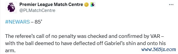 英超官方解释:“裁判 不是十二码球的决定经过了VAR的审核和确认, 里尔球被判定从加布里埃尔的小腿上弹到了他的手臂上。”
