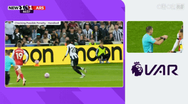 09月29日讯 阿森纳对阵纽卡的赛事 ,加布里埃尔危险区域 内手球运动 , 体坛快讯通直播吧VAR介入后未判点。