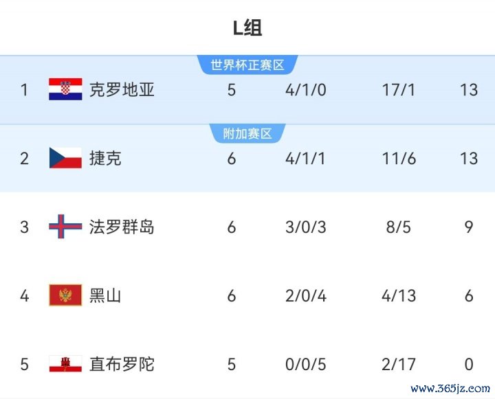 在目前的积分榜上,法罗群岛3胜3负排名小组第3,其中两场获胜 是在直布罗陀身上获得的。最后两轮赛事 他们将对阵小组前二克罗地亚和捷克,在首局 对阵这两支球队时,法罗群岛也只是1球落败。虽然几乎不可能在世界杯赛 上看到这个北欧群岛的身影,但还是可以期待他们能否带来更多惊喜。