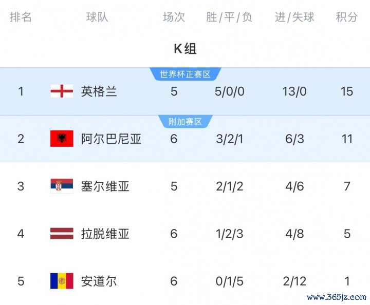 英格兰、葡萄牙有可能成为欧洲区前两支锁定2026世界杯赛 资格的球队。根据欧洲区世预赛规则西甲积分榜,12个小组的小组第一以及4支欧足联附加赛胜者将获得世界杯赛 的晋级下一轮 资格。