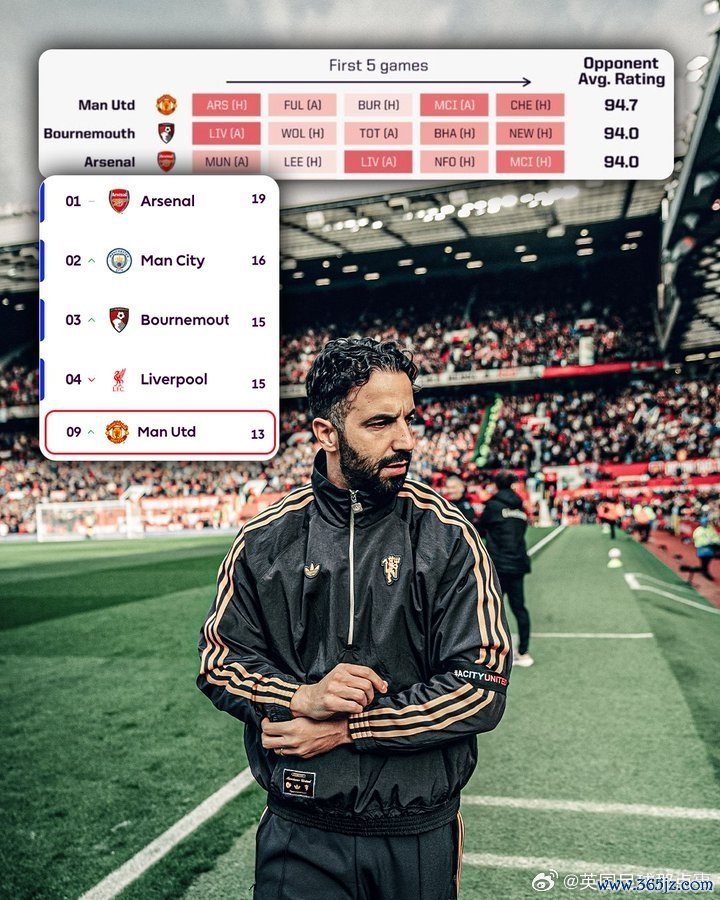 仅追赶 前四2分📈OPTA赛程评级:曼联是本赛季英超开局最难球队