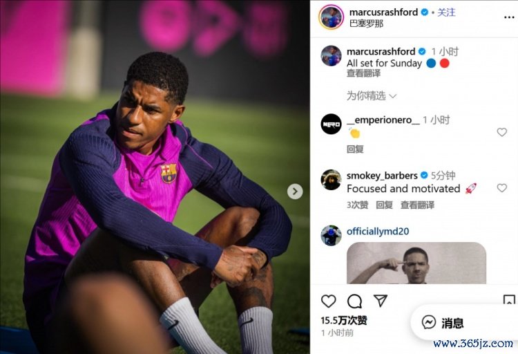 拉什福德写道:“一切准备就绪, 体坛快讯通直播吧迎接周日!”