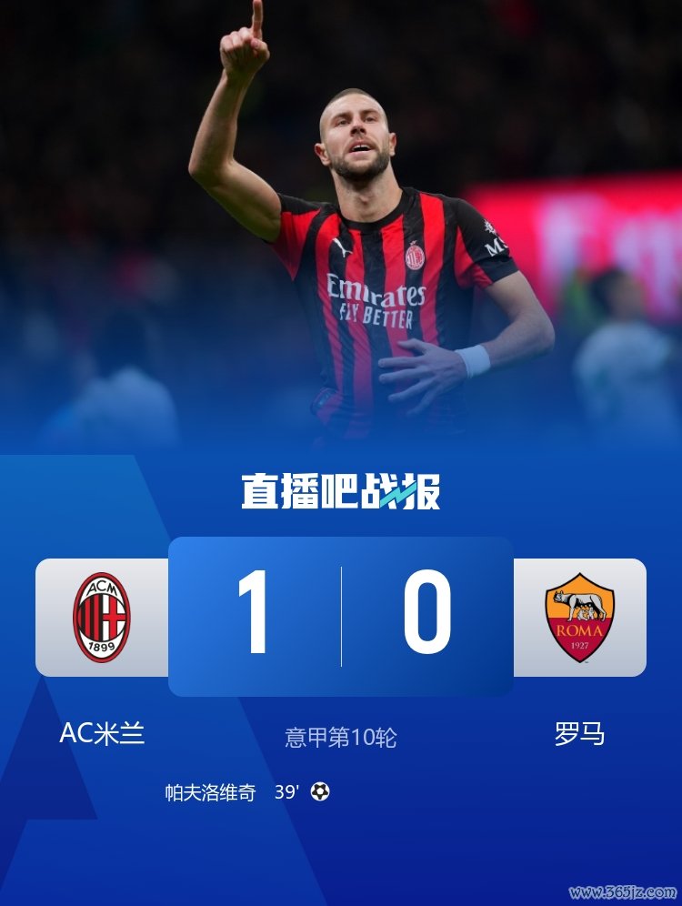 本轮意甲焦点战,米兰1-0击败罗马,莱奥助功 帕夫洛维奇打入全场唯一得分 。