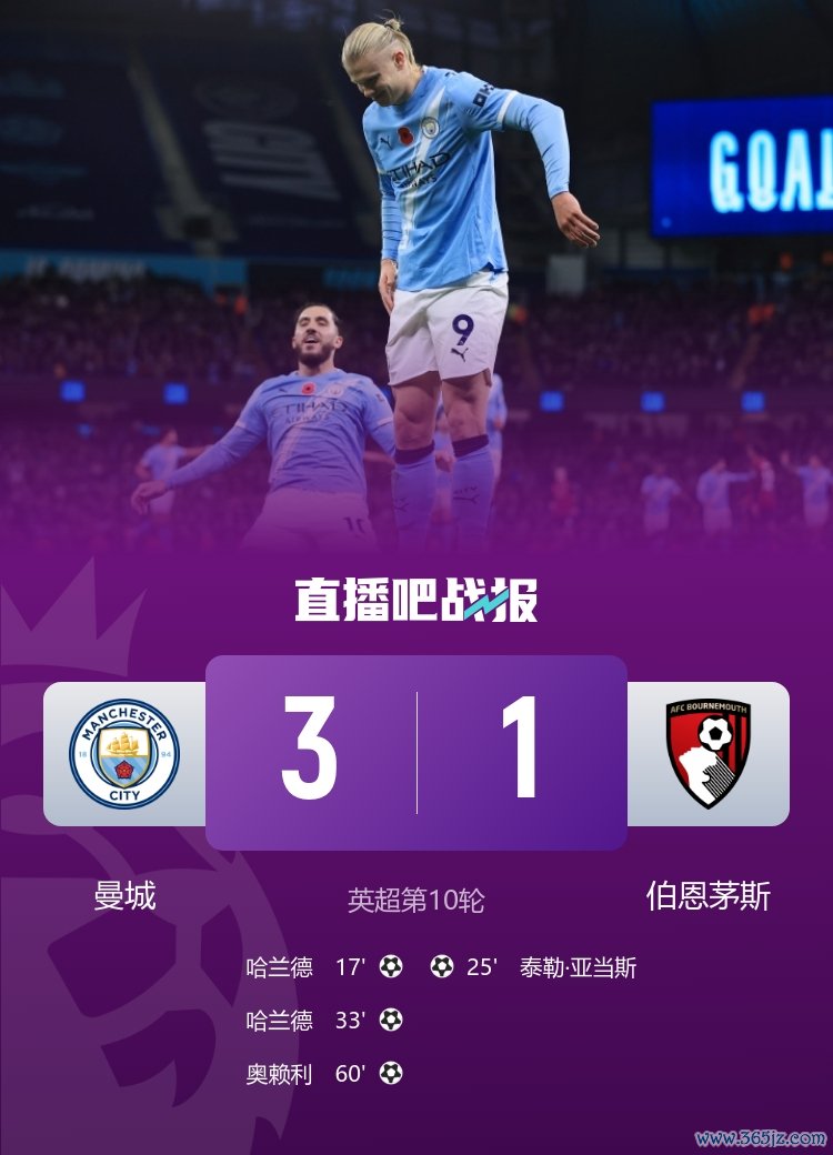 升至第2!曼城3-1伯恩茅斯距榜首6分 哈兰德单刀赴会双响谢尔基两助功