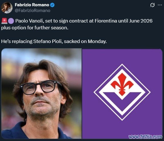 罗马诺表示:“瓦诺利即将与佛罗伦萨签约,欧冠合同期限至2026年英格兰足球超级联赛nba, 体坛快讯通直播吧含延长一年的条款。他将取代周一被解雇的皮奥利, 里尔成为紫百合新帅。”