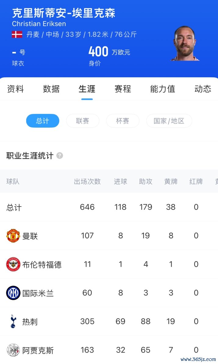 33岁的埃里克森今夏与曼联合同到期后, 体坛快讯通成为了一名自由球员。上个赛季埃里克森在曼联登场35次19次杆位, 里尔有5球5助功 。