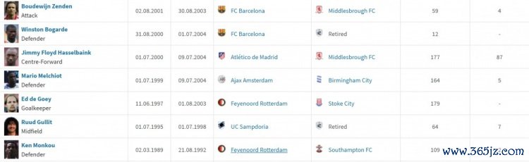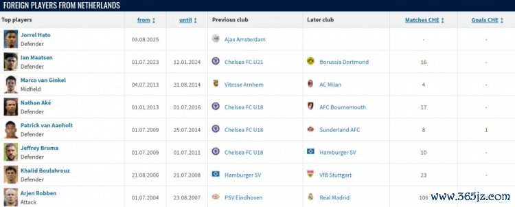 8月4日讯 切尔西官宣荷兰籍后场球员哈托加盟球队,球队官方列出了队史荷兰籍球员,欧冠足球直播在哈托之前共有14名球员。
