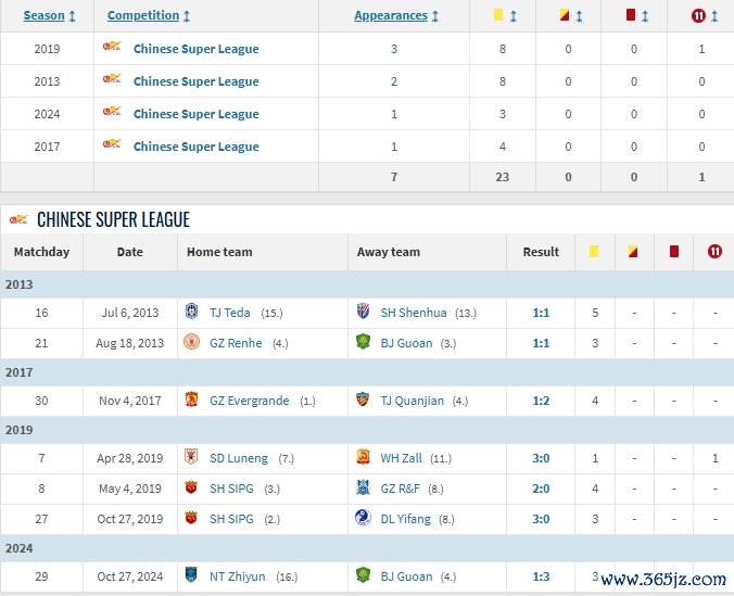 塔基执法中超赛事 记录(资料来源:德转)↓