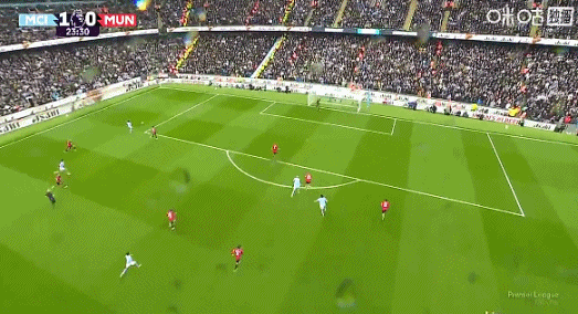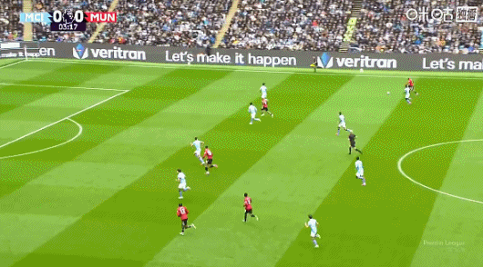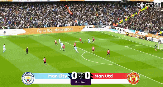 上半场补时1分钟,曼城1-0曼联。